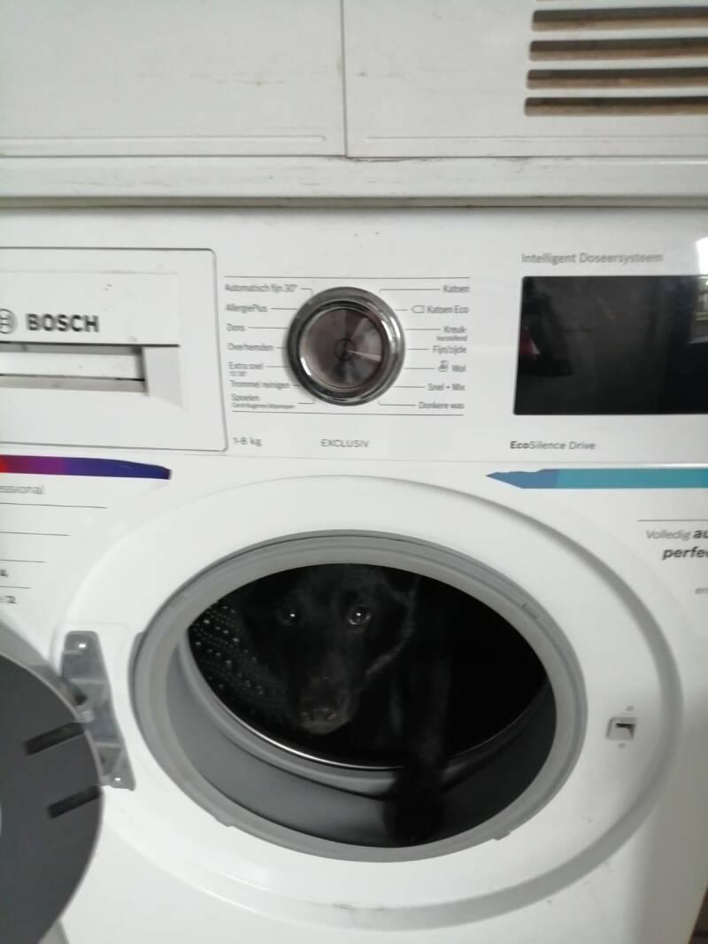 (uiteraard mag er nooit een dier in de was- of droogmachine gedaan worden met de bedoeling de machine aan te zetten)