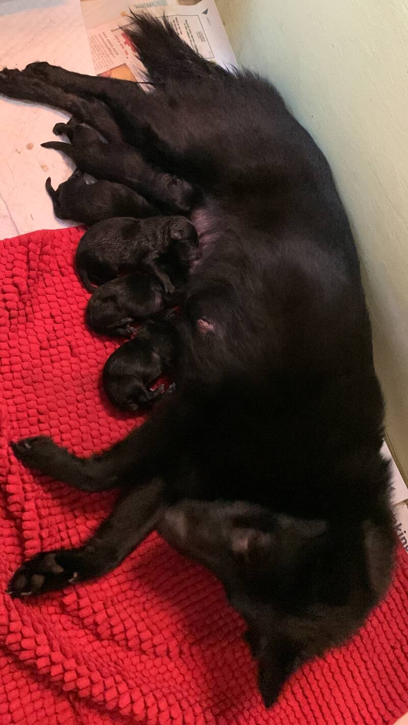 Het zette flink door en de eerste teef kwam op de wereld, een mooi sterk hondje wat meteen goed actief was.