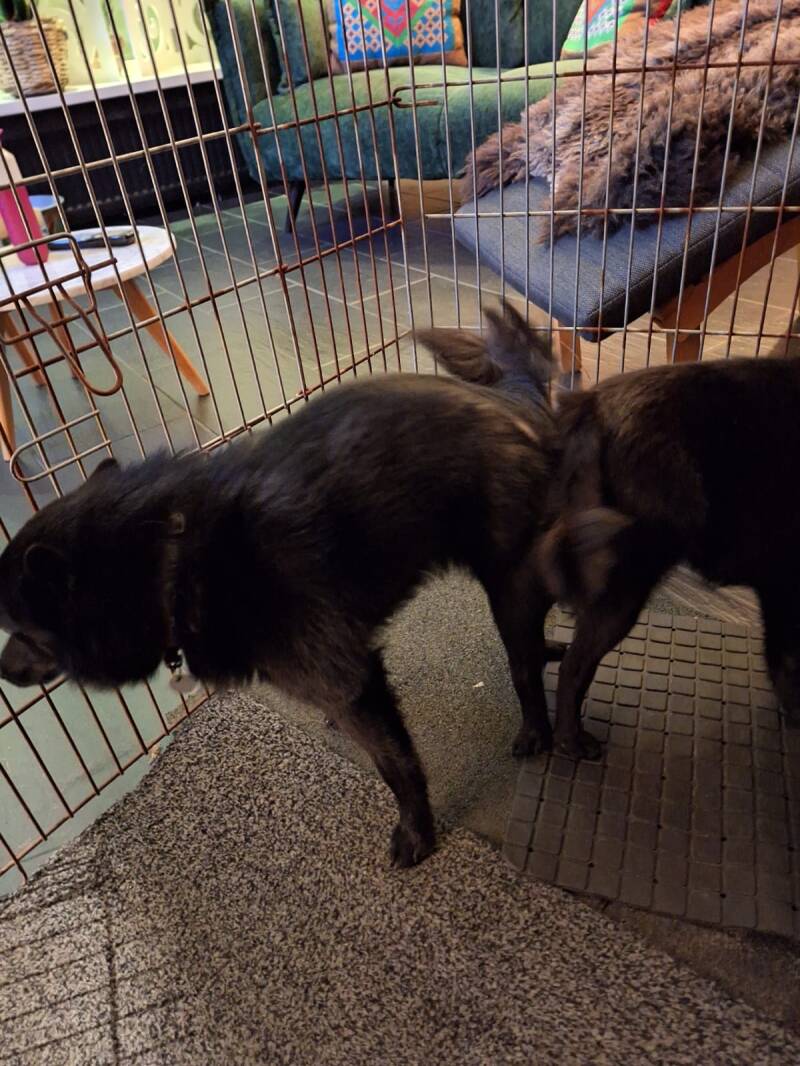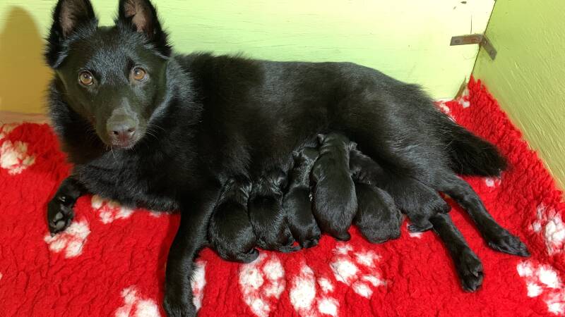 Ze is erom mee gegaan naar de reu toe want zo’n groene nog maagdelijke Schipperke is lang niet altijd gemakkelijk.
