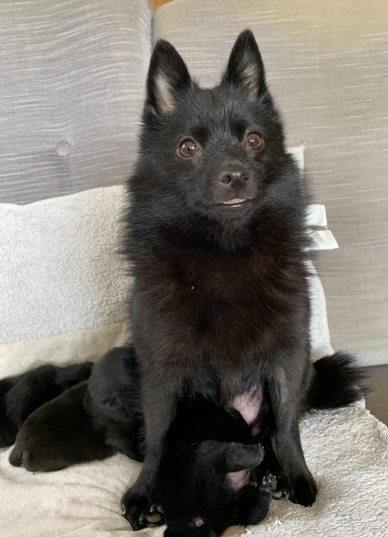 De dagen werden afgeteld en op dag 63 precies de gemiddelde einddatum van de draagtijd bij de hondjes gaf ze aan dat de geboorte aanstaande was.