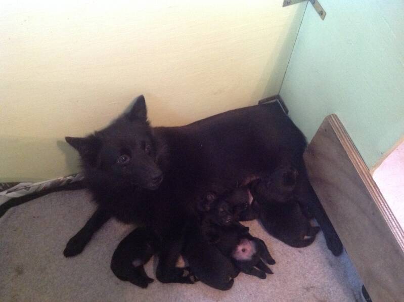 In het begin ging Nikita zitten met zogen want ze moest de hondjes likken, en ondertussen ook de omgeving goed bewaken.