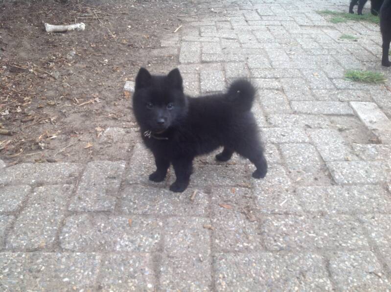 Hij is 4 keer op puppycursus geweest en doet het erg goed! Met andere honden spelen vindt hij geweldig, hij is niet bang en hij heeft niet door van zichzelf dat hij zo klein is.