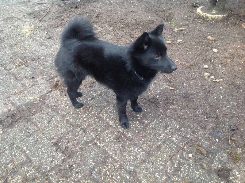 Ze heeft via een stapel stenen een gat in de tenen erfafscheiding gevonden en zich in de tuin van de buren laten vallen. Ze zag de buurvrouw in de tuin aan het werk en wilde even naar haar toe. Hoezo is het schipperke een eenkennig ras!