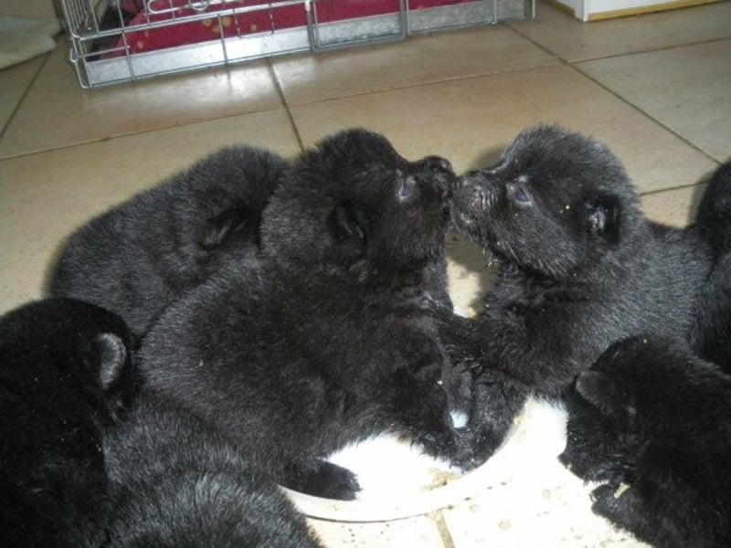 De hondjes blijven 8 weken bij de moeder, ze worden bij mij in huis geboren en zijn constant in contact met alles wat er normaal in een gezin gebeurt. Als ze vijf weken zijn gaan ze ook naar buiten om daar te wennen aan alle geluiden en omstandigheden.